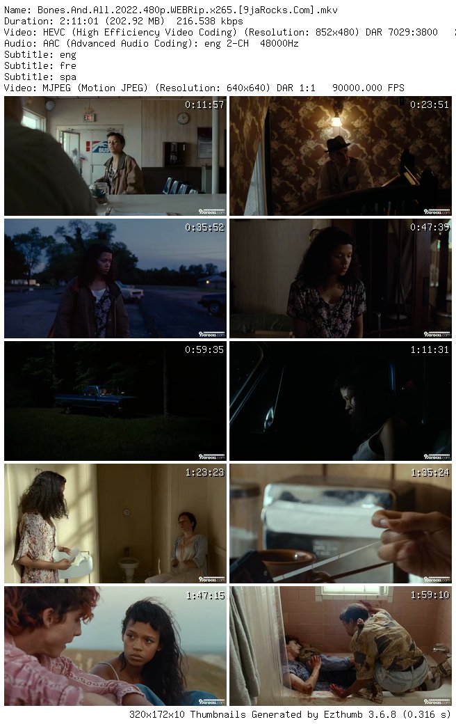 Filename: Bones.And.All.2022.480p.WEBRip.x265.[9jaRocks.Com].mkv