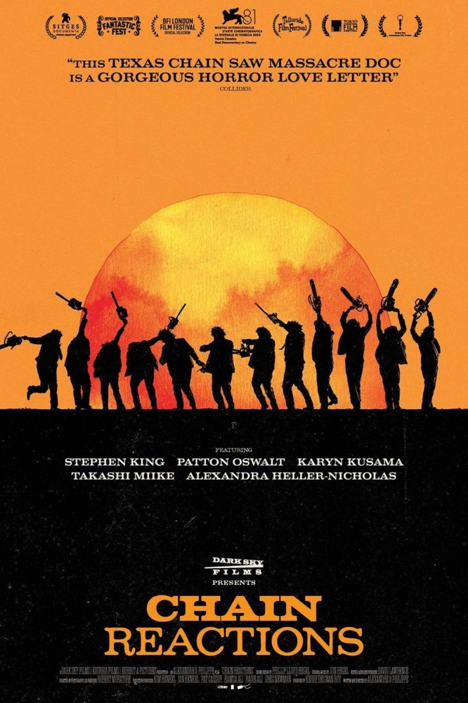 The Texas Chain Saw Massacre’s impact on 5 artists – Patton Oswalt, Takashi Miike, Alexandra Heller-Nicholas, Stephen King, Karyn Kusama – through interviews, outtakes, exploring how it shaped their art, psyche from childhood trauma.
