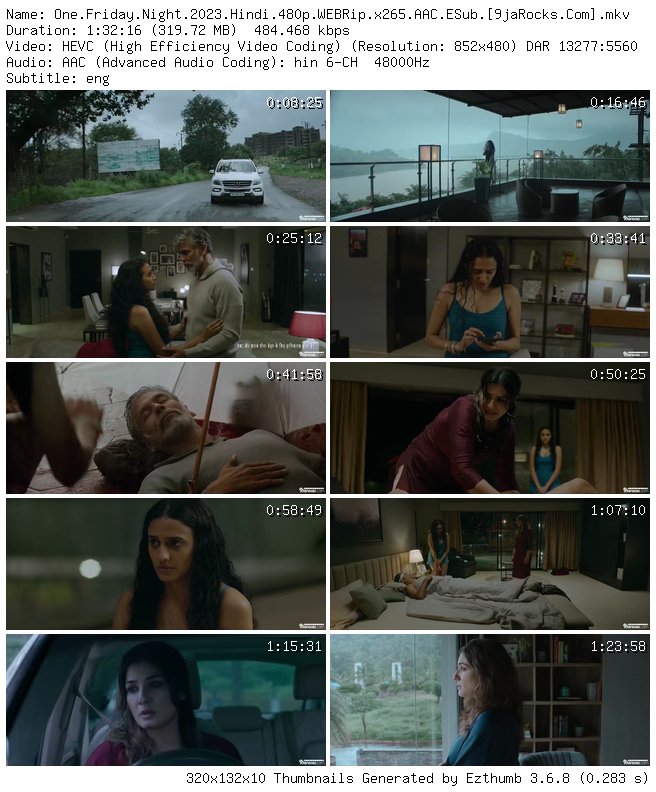 Filename: One.Friday.Night.2023.Hindi.480p.WEBRip.x265.AAC.ESub.[9jaRocks.Com].mkv